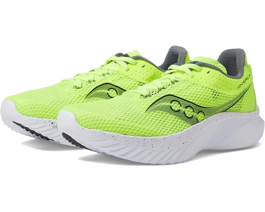 Make the most of your running sessions by opting for the striking Saucony® Kinvara 14 Running Shoes. SKU: #9824687Textile and synthetic upper. Textile lining and removable textile insole. Classic lace-up closure. Brand’s iconic logo on the upper and tongue. Padded collar and tongue for superior cushioning. PWRRUN+ midsole is lightweight and responsive for soft cushioning throughout your run.Round toe silhouette. Imported. Product measurements were taken using size 9, width D – Medium. Please note that measurements may vary by size.Measurements: